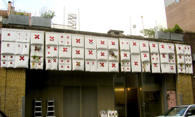In the meanwhile…downtown “love-ins” for storm drains and interpretations of window boxes aka “Agbags” from Natalie Jeremijenko’s Farmacy Clinic and The Art of Eco-mindshift. Natalie, whose “real-life experiments include walking tadpoles, texting “fish” and planting fire-hydrant gardens” is in full force on TED.